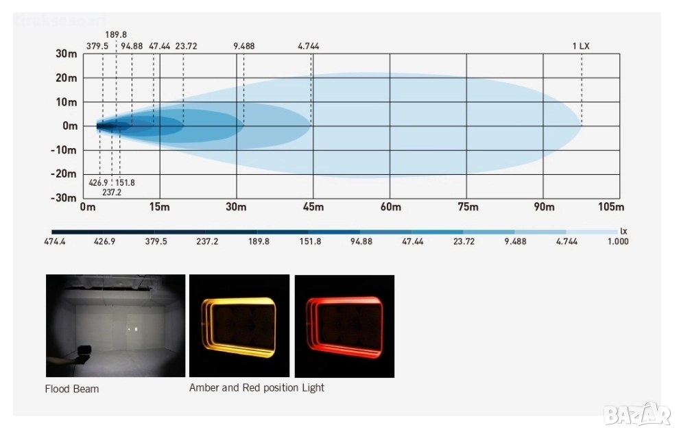 Подходящ за офроуд превозни средства, строителна техника, земеделски машини, камиони и специализирани машини. Осигурява равномерна, силна и надеждна светлина при всякакви условия.