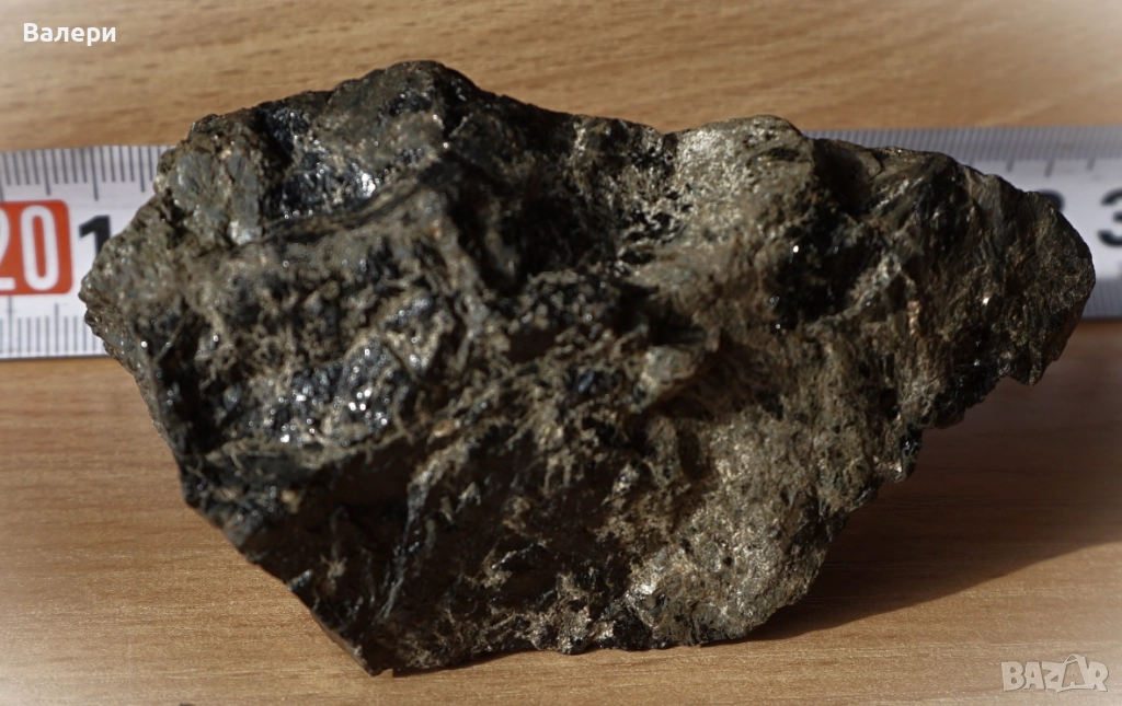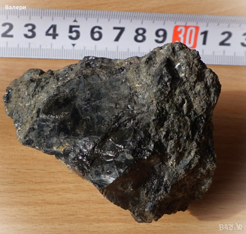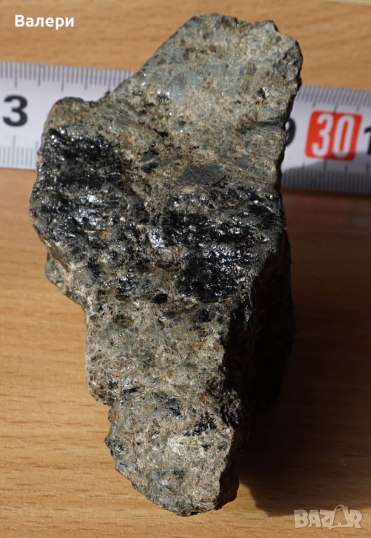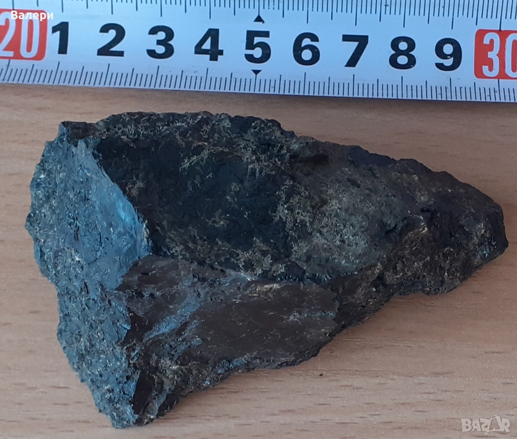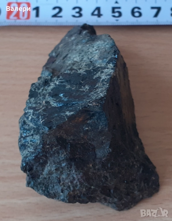 Продава се камък черен турмалин - естествен, необработен, има примеси от допира с друга скала