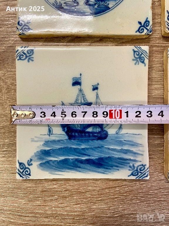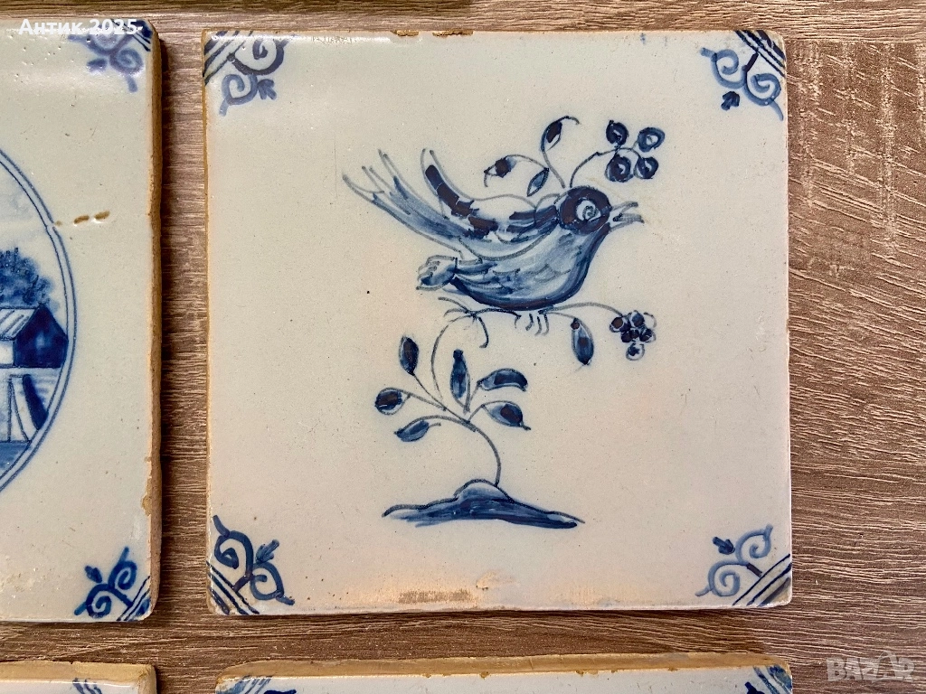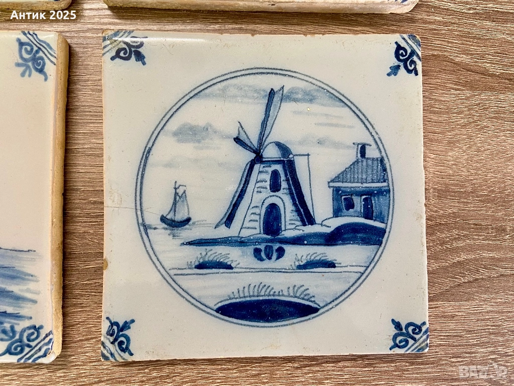 Комплект винтидж керамични плочки в стил Delft Blue, Нидерландия