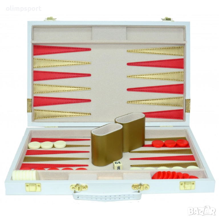 Бежово игрално поле с червени и златни триъгълници, шити.