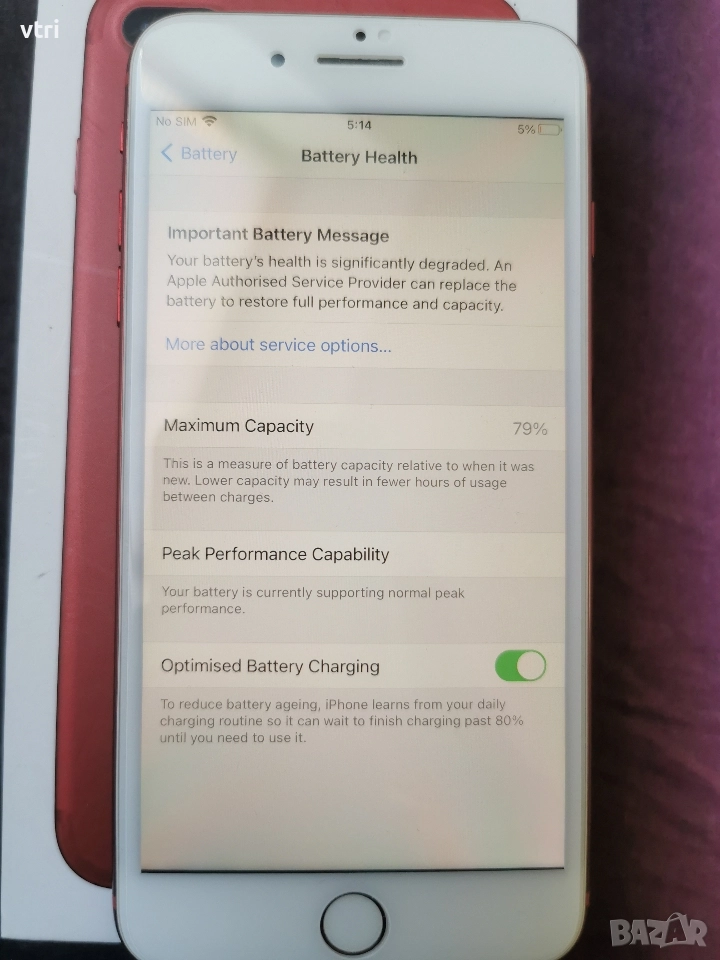 Телефонът е буквално като нов. Червеният цвят. С памет от 128GB. Пълен комплект, като аксесоарите не са използвани въобще - видно от снимките. Серийният номер на телефона съвпада с този на кутията. Фабрично отключено.