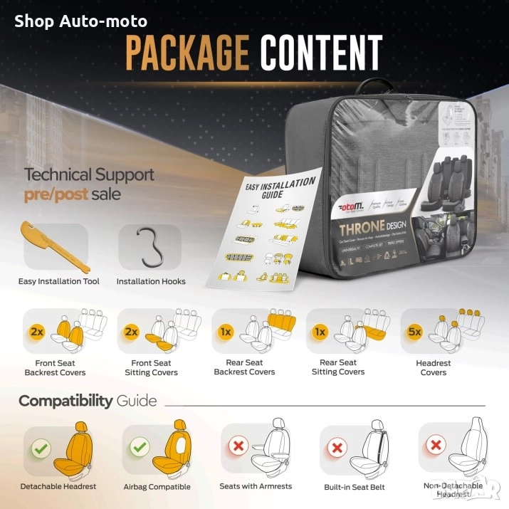Премиум комплект калъфи за седалки, създаден за максимален комфорт, безопасност и дълготрайна защита. Универсално съвместим с повечето автомобили и SUV.