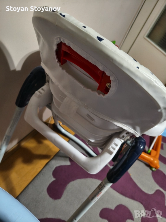 ПОДАРЪК: Към стола подарявам музикален и интерактивен баскетболен кош WinFun! Играчката е цветна, със светлини и звуци, идеална за стимулиране на двигателните и слухови умения на детето. Работи отлично и е в добро състояние.