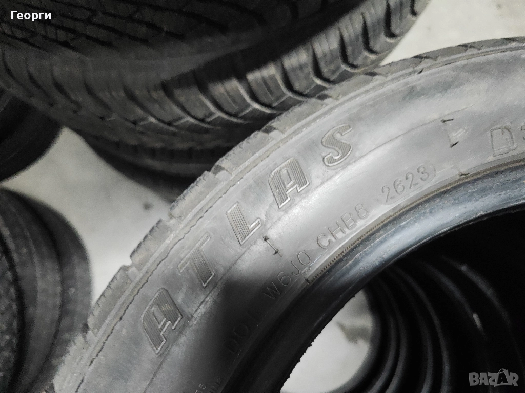 2бр. Atlas,195/50/15 ДОТ 2623, 6.3mm грайфер, цената е за 1бр. Гумите са перфектни, без забележки, проверени са машинно за кривини, балони! Разполагаме с всякакъв размер нова и втора употреба гуми от 14-22 цола за автомобил, джип и бус.