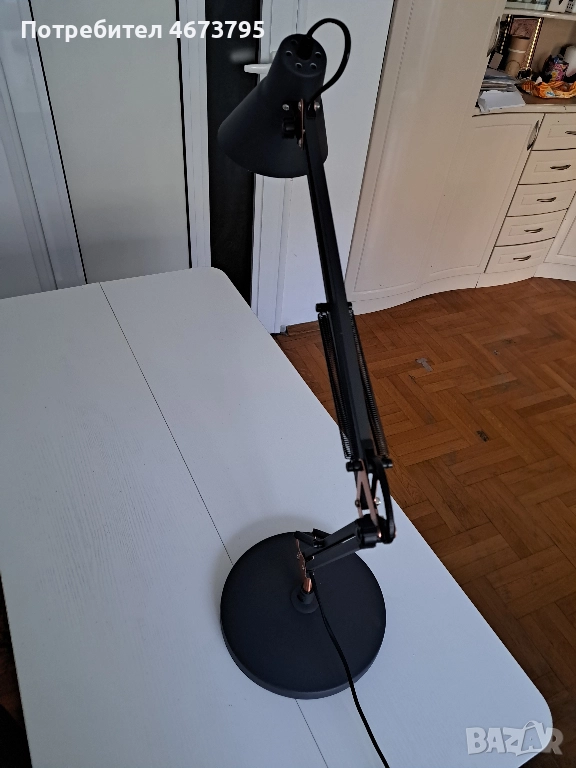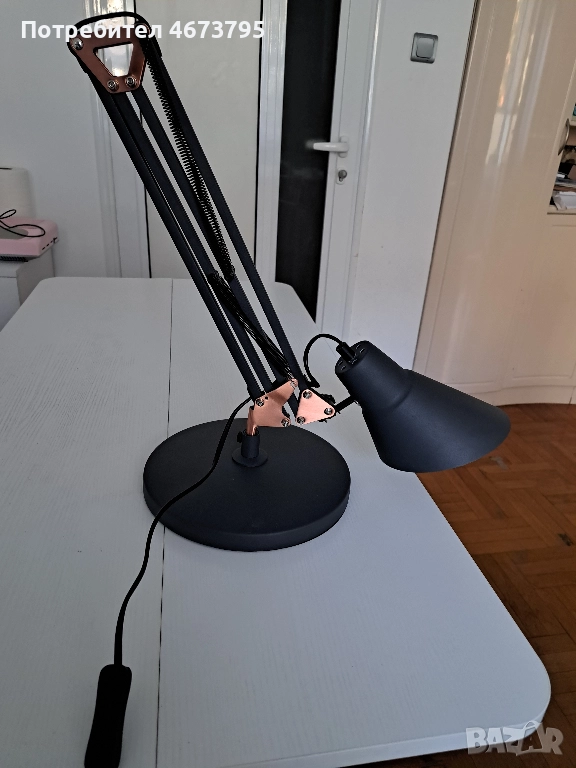 Лампата е в отлично състояние, в основата си може да се върти на 90 градуса, рамото е също подвижно, което дава възможност лампата да бъде наместена на удобна за работа височина. Продавам я, защото имам още една такава, от която съм много доволна, но няма да ползвам. Към нея подарявам и допълнителна LED крушка.