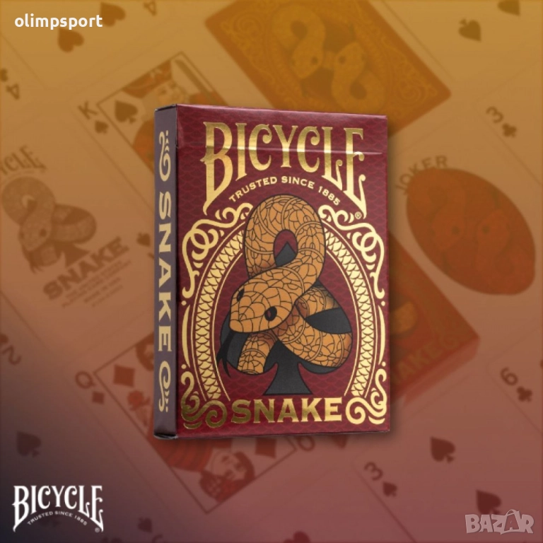 Брилянтната змия от златно фолио върху кутията е готова да удари.