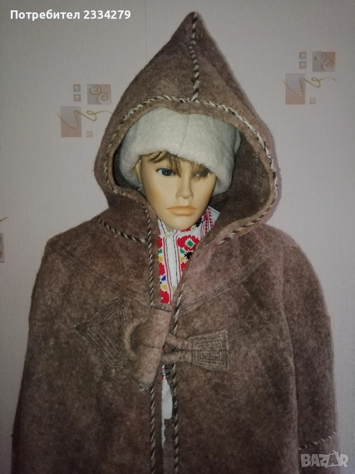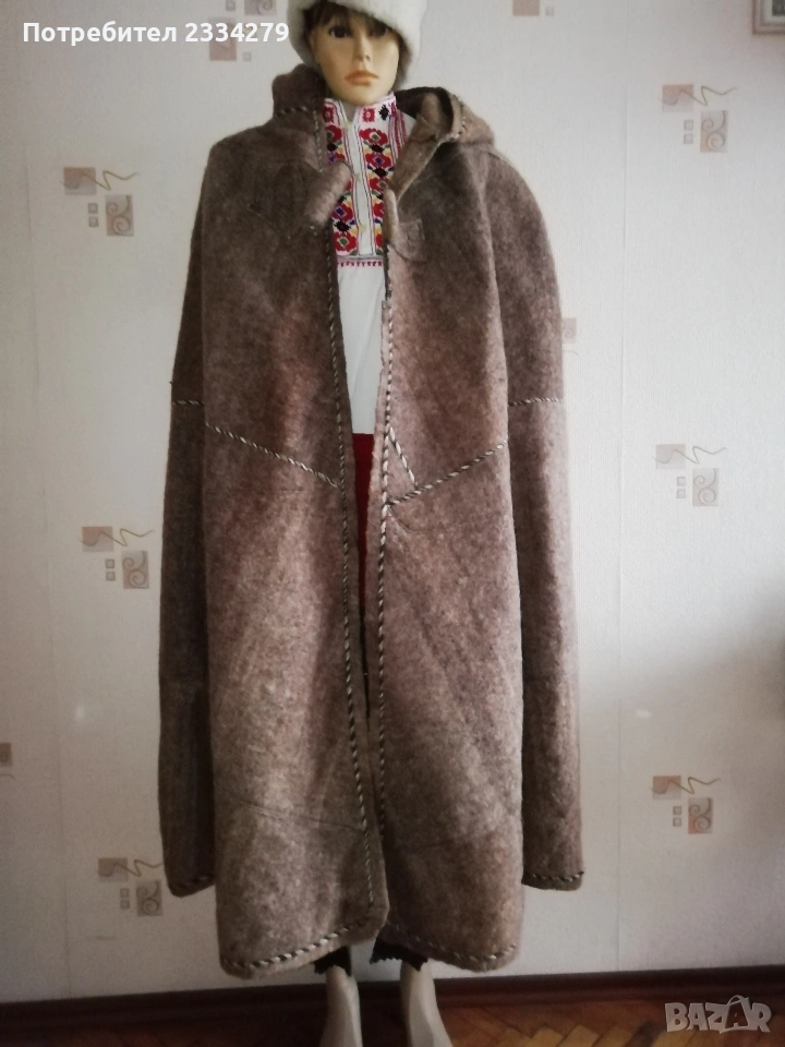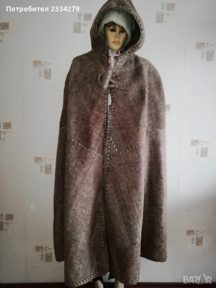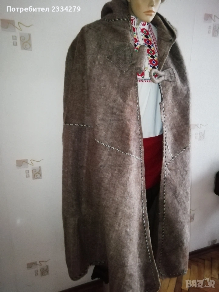N:1 стар добре запазен автентичен мъжки ямурлук, изработен от ръчно тъкан плътен, тежък плат аба от чиста вълна шит и краен с гайтани, плетено копче, дължина 1м.30см.(без качулка). Може да се ползва и зимата, дебел плат, може и за декорация на битова къща, заведение механа, цена 130€. без коментар. (има една забележка на гърба, която е оправена през миналото). N:2 стар 100% автентичен над 100 годишен ямурлук със забележки от времето, проядено, подходящ за декорация за битова къща механа, витрина който може да се реставрира, цена 25€.; N:3 Автентична