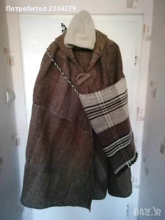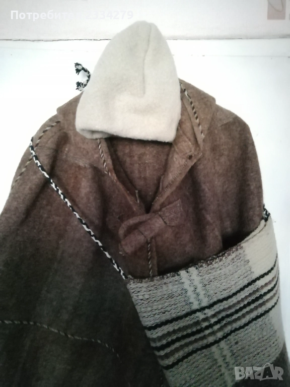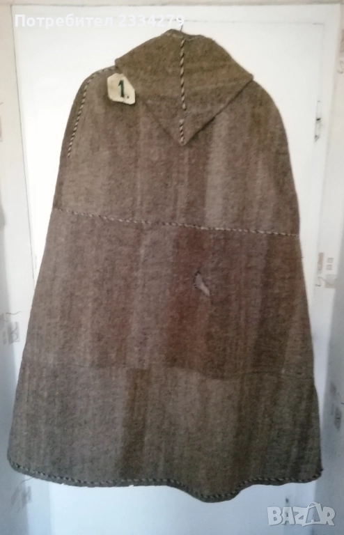 N:1 стар добре запазен автентичен мъжки ямурлук, изработен от ръчно тъкан плътен, тежък плат Аба от чиста вълна шит и краен с гайтани, плетен копче, дължина 1м.30см.(без качулка). Може да се ползва и зимата, дебел плат, може и за декорация на битова къща, заведение механа, цена 120€. без коментар. (има една забележка на гърба, която е оправена през миналото). N:2 стар 100% автентичен над 100 годишен ямурлук със забележки от времето, проядено, подходящ за декорация за битова къща механа, витрина който може да си реставрира, цена 25€.; N:3 Автентична
