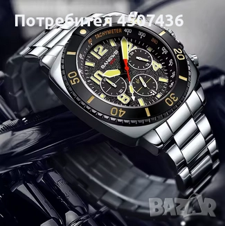 Това е стилен мъжки часовник с класически дизайн. Красив и изискан голям циферблат с три функционални подциферблата и дисплей за дата, тахиметрични цифри на безела, с модна каишка.