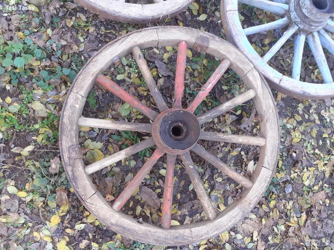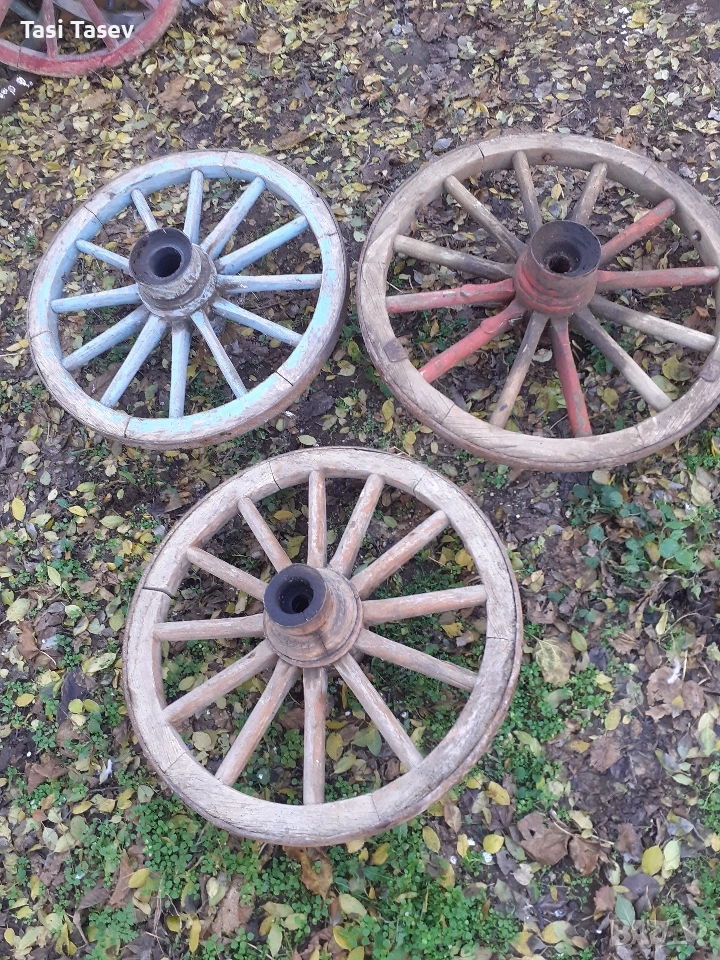 Колела от каруца. Три броя са. Диаметъра им е около 65 см. Здрави са. Цена 50 лева на брой.