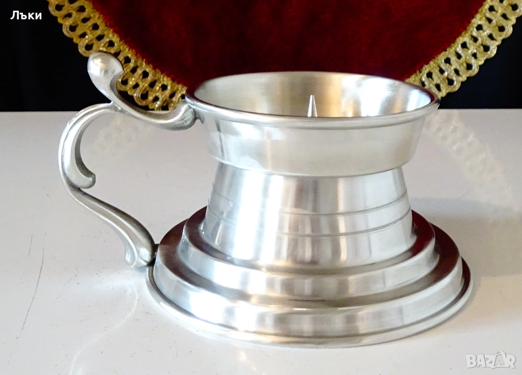 Западно Германски калаен свещник с дръжка,преносим свещник,майсторска
