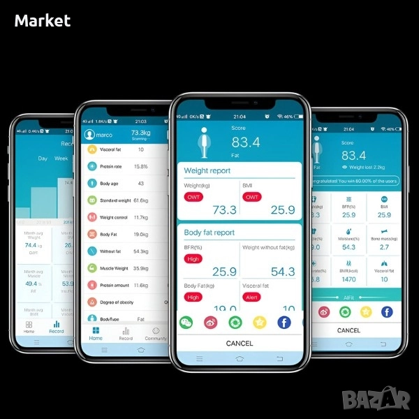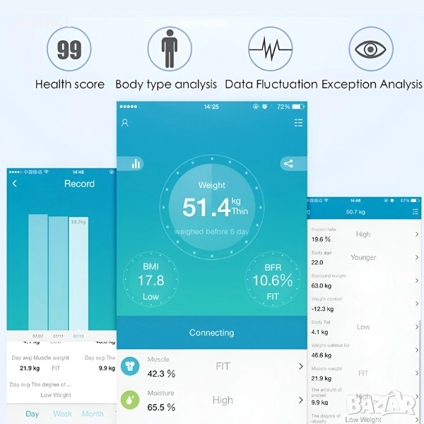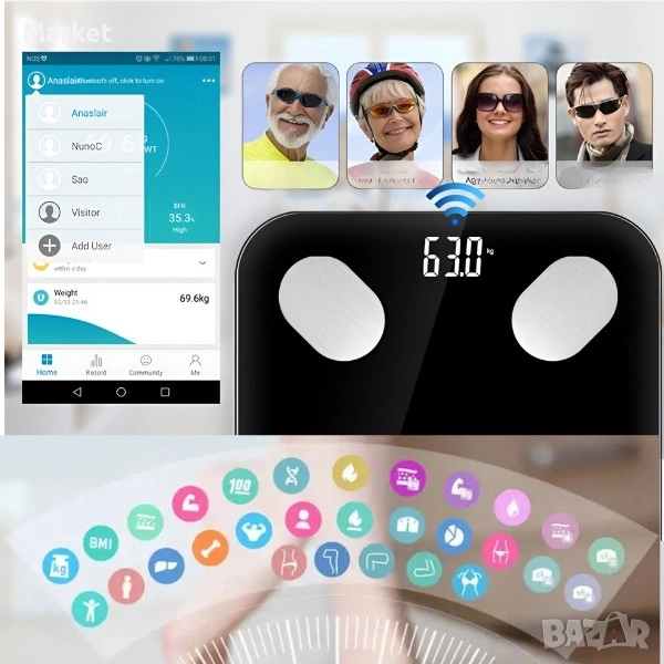 Проследява индекса на телесната маса, мускулите, протеините, висцералните мазнини, формата на тялото и дори физическата ви възраст.