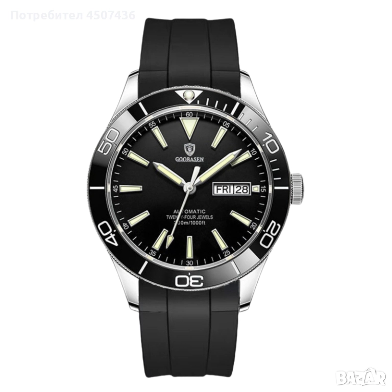 Goobasen Кварцов Часовник Силиконова Каишка, Луминесцентен Двоен Календар,Неръждаема стомана, водоустойчив.