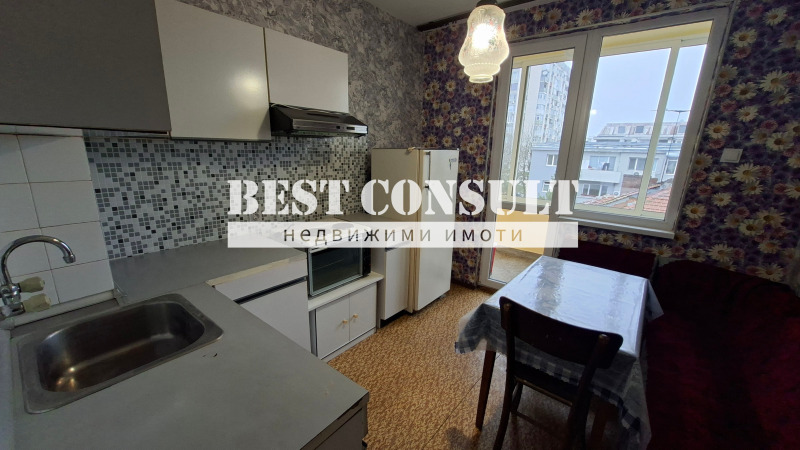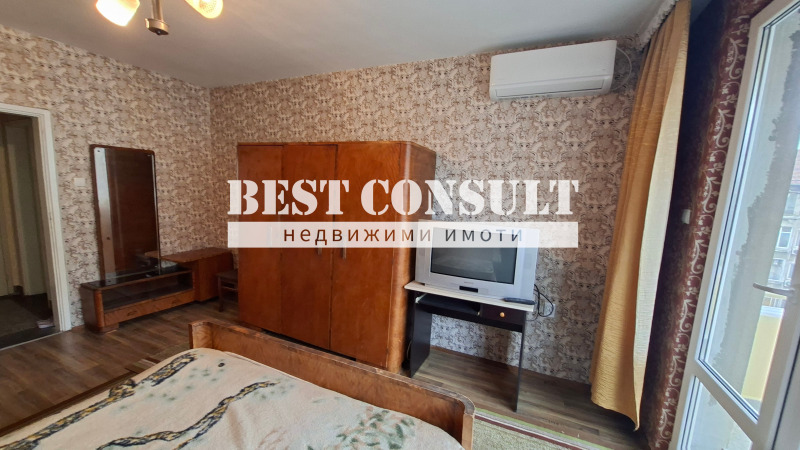 БЕСТ КОНСУЛТ предлага двустаен, среден, монолитен, обзаведен aпартамент /печка, ширм, пералня, хладилник, фризер, два климатика, спални, гардероб, маси и др./. Състои се от кухня, две спални, баня с тоалетна, две тераси /едната остъклена/, килер и входно антре. Ползва се и маза. На ул. Муткурова, срещу СБА. Не се допускат домашни любимци! Може да се обадите по всяко време, включително и в почивните дни. ОБЯВА 4517