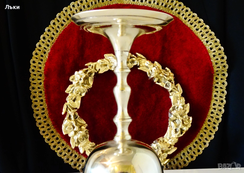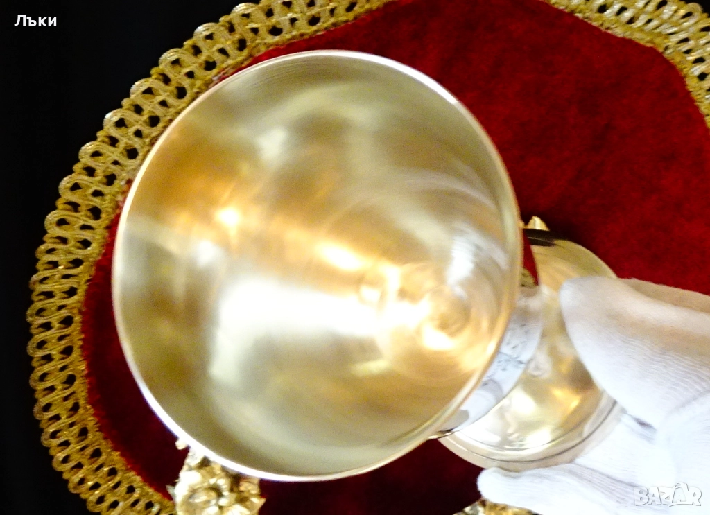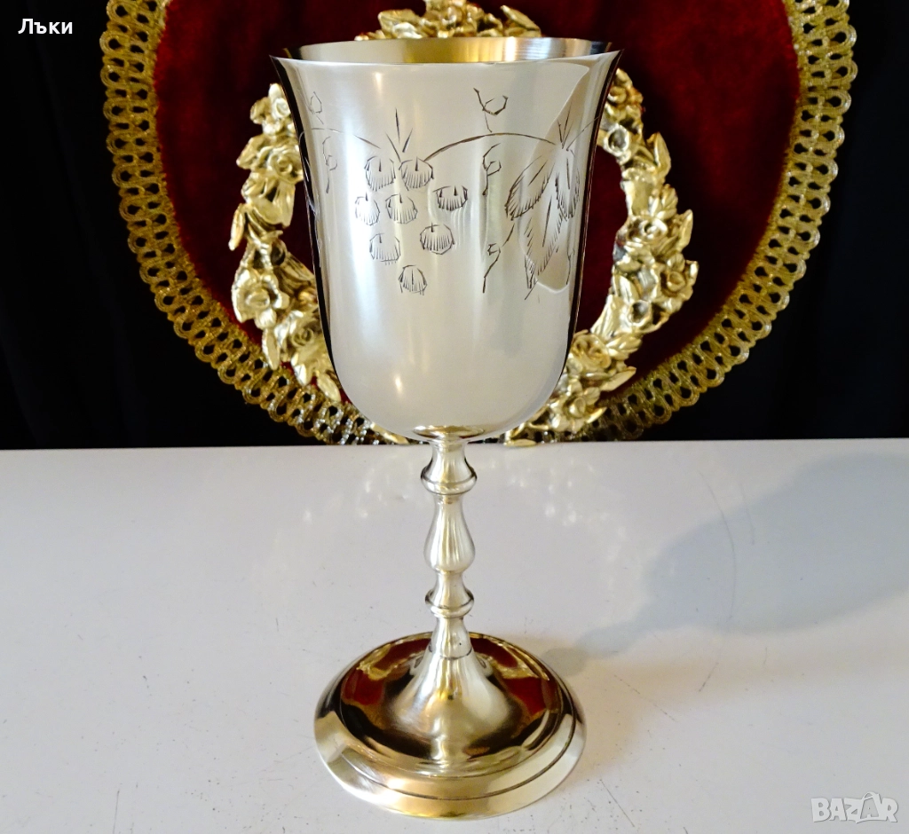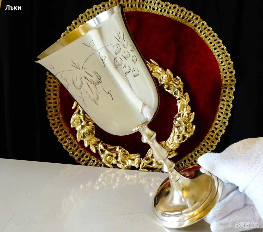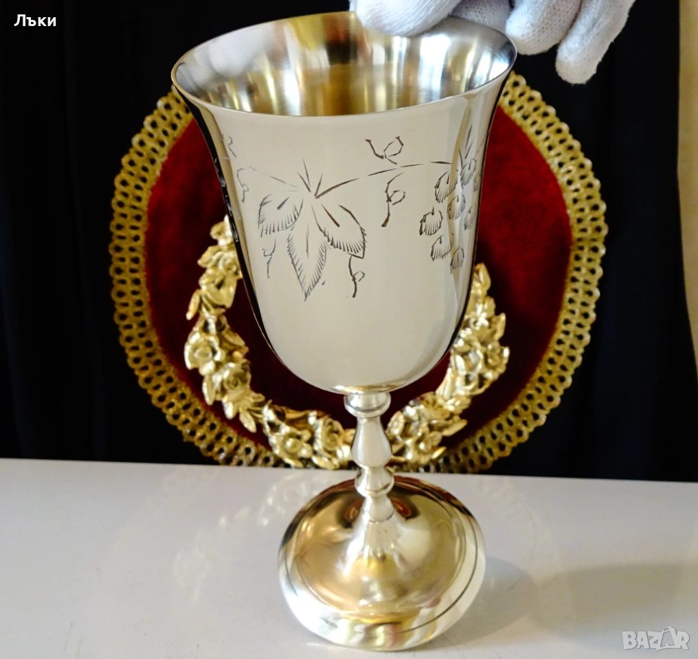 блясък.Декориран с релефно гравирана лоза със зряло грозде,символ на