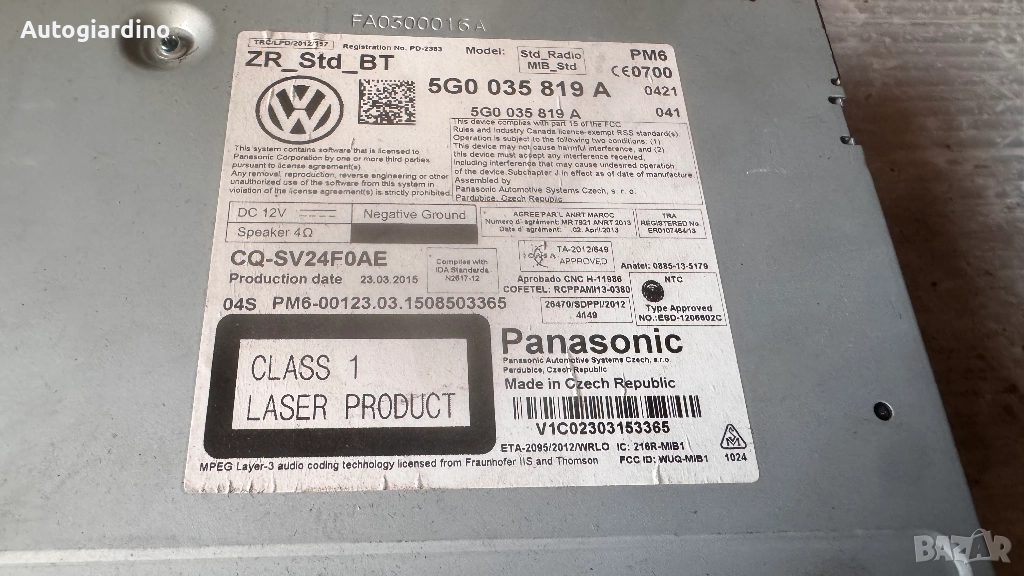 Оригинална Аудио / GPS и видео система за VW Golf 7 - 5G0035819A / CQ-SV24F0AE / FA0300016A