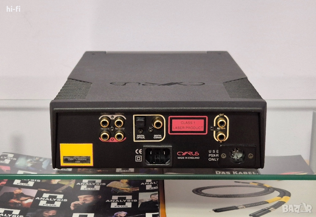 Това е висок клас, фантастично звучащ британски сд плейър, който може да бъде надграден със захранване PSX-R. Плейърът е работещ, но подобно на много CD плейъри Cyrus, може да е капризен. С чисто нов оптичен механизъм е. Когато работи без долния капак е перфектен, но когато е поставен долния капак поведението му се променя. Някой дискове ги прочита, но други не. Има нужда от внимание. Плеърът е висок клас, с два отделни тороидални трафа за цифровата и аналогова част. Звукът му е на доста високо ниво. Външно е в идеално състояние, без драскотини, екрана е ярък. Заслужава си пълното му възстановяване. Като нов този плеър е струвал над 1000 GBP. По-горния проблем е отразен в цената, Снимките са реални. Компонента е с оригиналния захранващ кабел, но е без дистанционно.