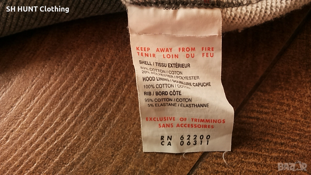 Размер: M - ширина под мишниците 61 см , дължина 68 см без качулката.