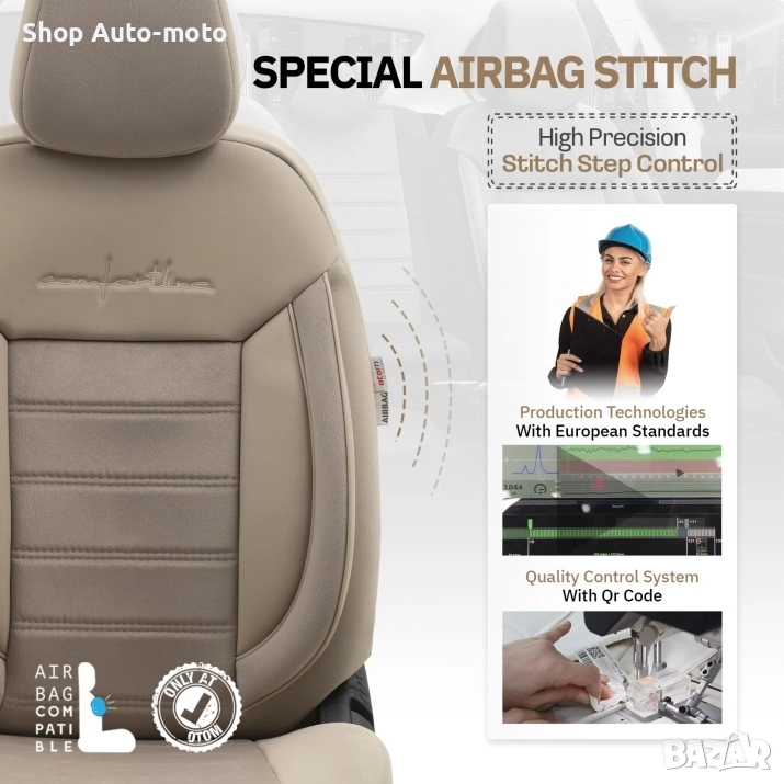 Премиум комплект калъфи за седалки, създаден за максимален комфорт, безопасност и дълготрайна защита. Универсално съвместим с повечето автомобили и SUV.