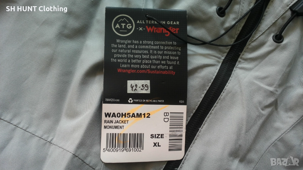Wrangler RAIN Jacket MONUMENT Размер XL тънко яке водонепромокаемо 42-59 → Обява 52794923