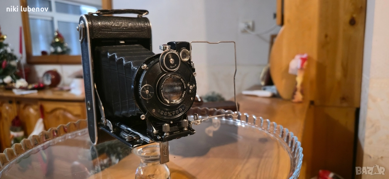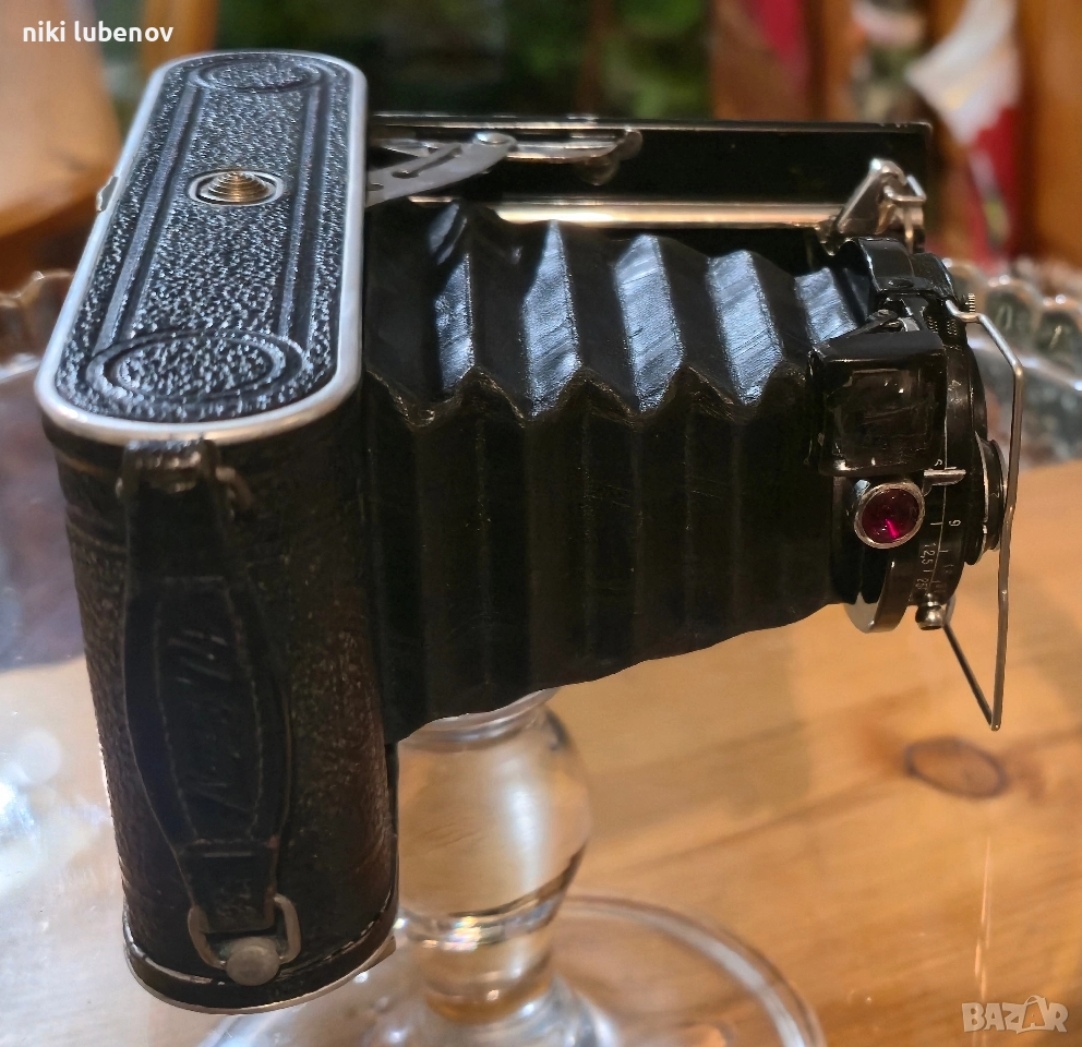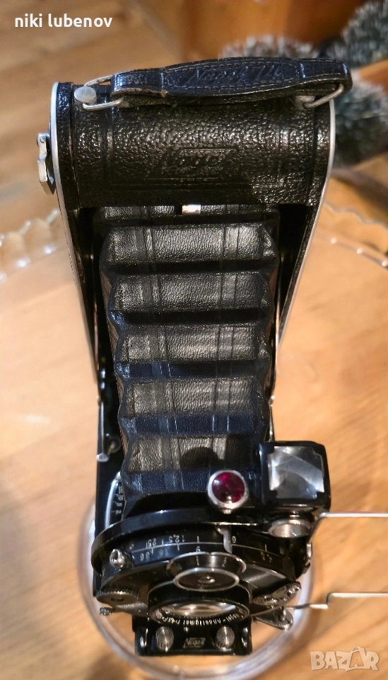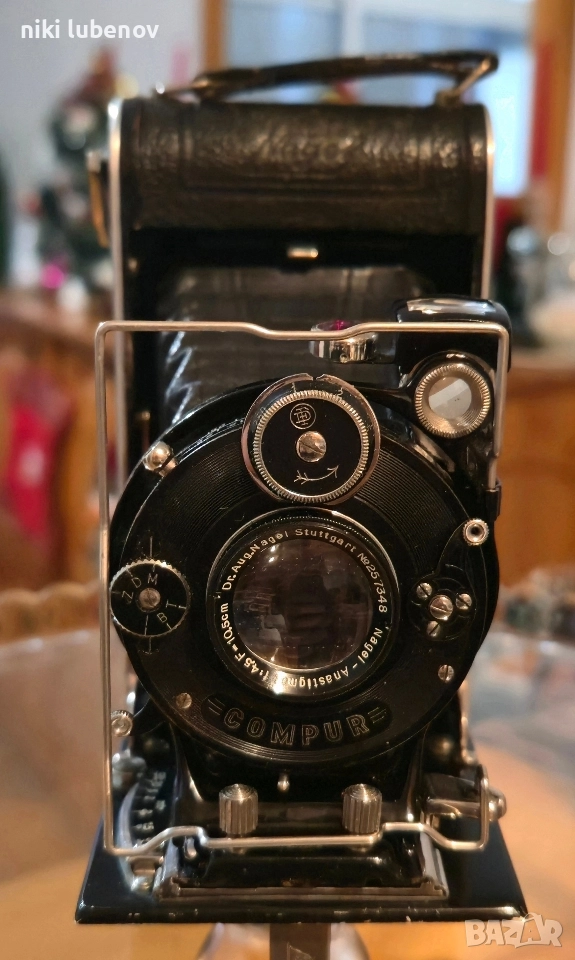 Фотоапарат: 📸 Dr. A. Nagel Stuttgart – Vollenda 48 Обектив: Anastigmat f/4.5, f = 10.5 cm (105 mm) Затвор: COMPUR (Germany) Сериен номер на обектива: No. 257348 📅 Датиране Производство: приблизително 1931–1934 г. Периодът съвпада с прехода Nagel → Kodak AG Stuttgart Това е класически сгъваем средноформатен фотоапарат от златната ера на немската фотография 📸