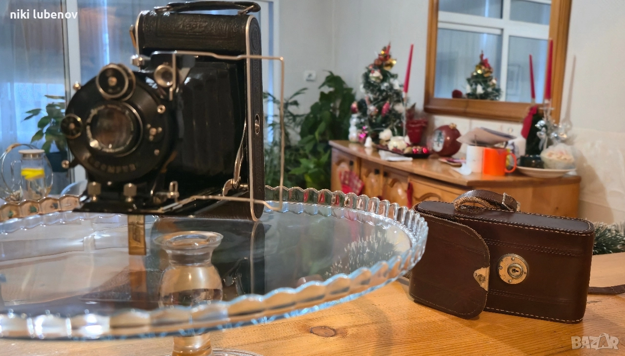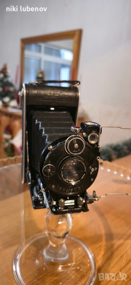 Винтидж фотоапарат Nagel Vollenda 48 – Compur (1930-те, Германия) Продавам оригинален сгъваем винтидж фотоапарат Dr. A. Nagel Stuttgart – Vollenda 48, произведен в началото на 30-те години. Модел с легендарен механичен затвор COMPUR и класически Anastigmat 10.5 cm f/4.5 обектив. 🔧 Характеристики: Производител: Dr. August Nagel, Stuttgart (Germany) Модел: Vollenda 48 Обектив: Anastigmat f/4.5 / 105 mm Затвор: Compur Период: ок. 1931–1934 г. ⭐ Предимства: Истинска немска класика Много търсен модел сред колекционери Подходящ за колекция, интериор, реквизит Автентичен външен вид, красиви детайли 📌 Състояние: Визуално: много добро за възрастта, като нов Функционално: [работи перфектно] Забележки: нормални следи от времето 📦 Изпращам с преглед и тест. 🤝 Възможен разумен коментар по цената. Ключови думи: vintage camera, Nagel, Vollenda, Compur, Anastigmat, ретро фотоапарат
