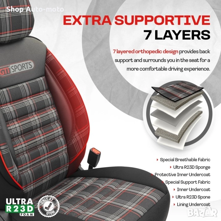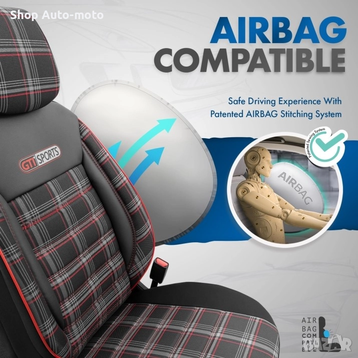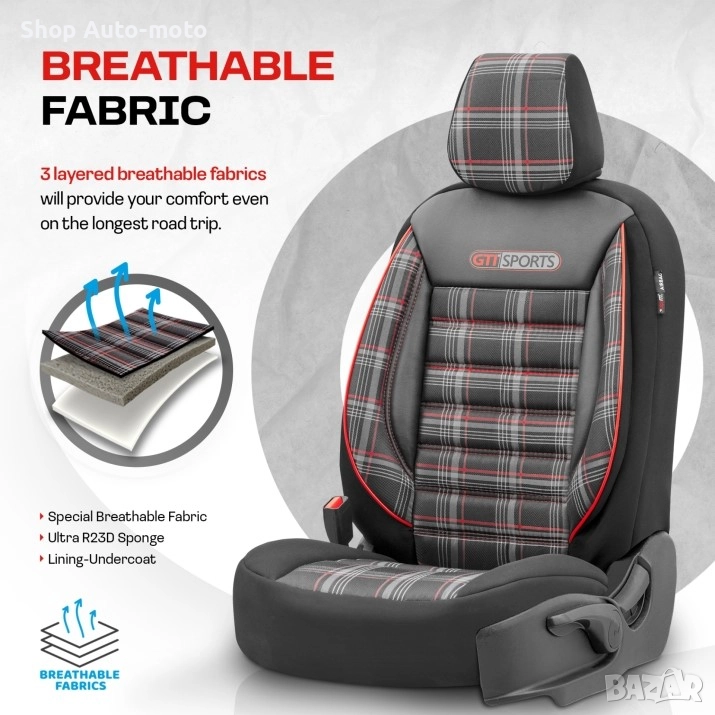 К-т Луксозна Тапицерия Automat-OTOM, Текстил с еко кожа, GTI SPORTS Design, Черна с червен шев