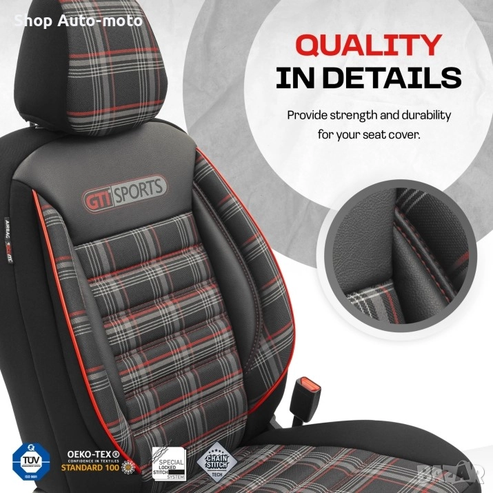 К-т Луксозна Тапицерия Automat-OTOM, Текстил с еко кожа, GTI SPORTS Design, Черна с червен шев.