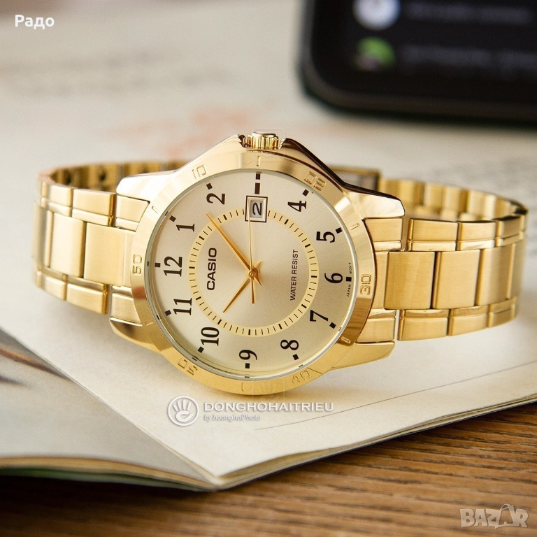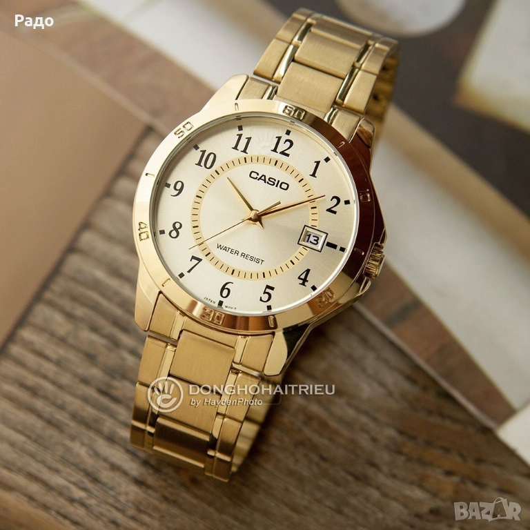 CASIO LTP-V004-9BUDF 3363 е стилен дамски елегантен водоустойчив часовник. Изработен е от неръждаема стомана, а стъклото е устойчиво на износване. Изискан дизайн и надеждност са гарантирани с марка CASIO. Циферблатът и индексите са златисти. Има ниво на водоустойчивост 5 АТМ. Снабден е с функции за показване на дата. Нов и не е използван - изключително и отлично запазен, без следи от употреба и в отлично работещо състояние. Продават се, тъй като вече имам много, а ми е подарък.