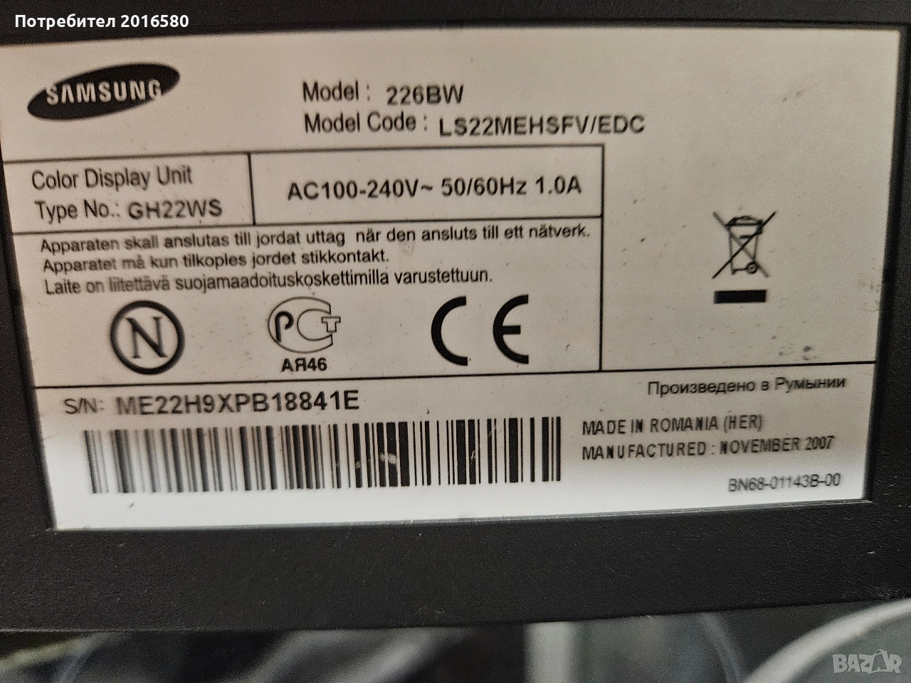 Монитор Samsung 22", снимка 1 - Монитори - 52796716 Монитор Samsung 22", снимка 2 - Монитори - 52796716 Монитор Samsung 22", снимка 3 - Монитори - 52796716 Монитор Samsung 22", снимка 4 - Монитори - 52796716 1/4