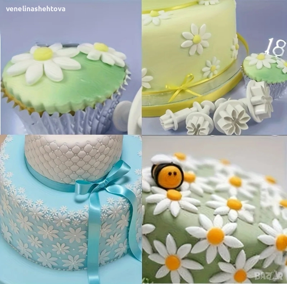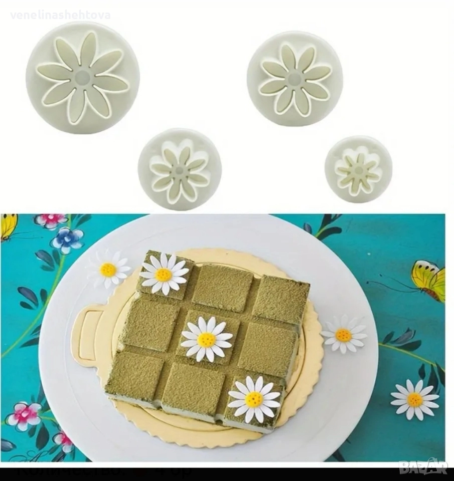 4 броя резци резец с бутало маргаритка бисквитки мъфини фондан декорация → Обява 52797099