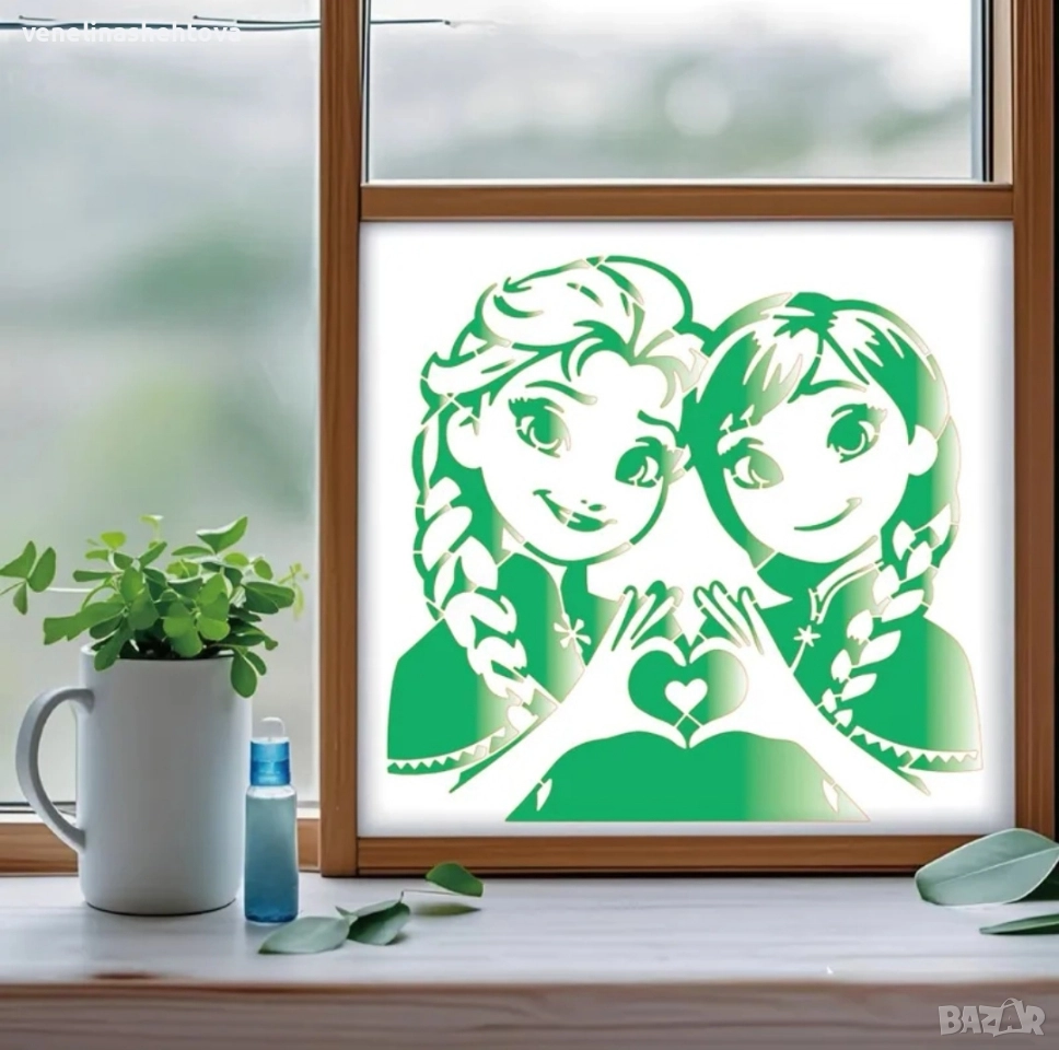 Елза и Ана голям шаблон стенсил за декорация на торта скрапбукинг текстил дърво → Обява 52797125