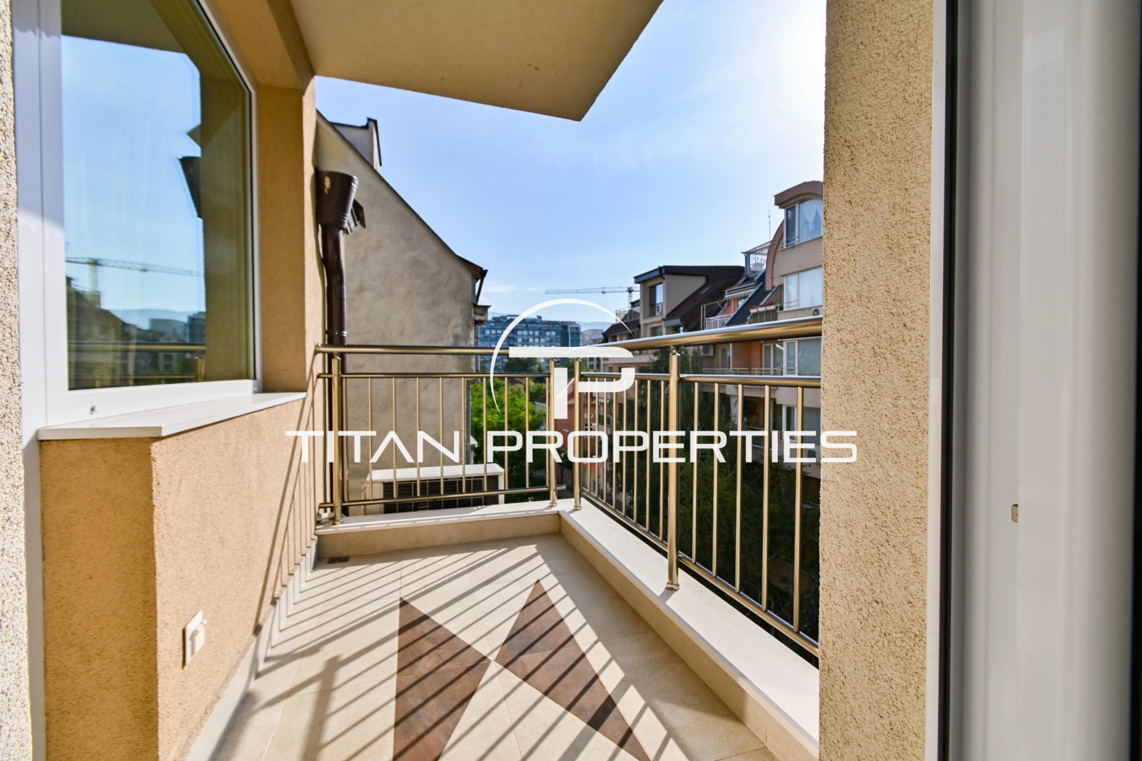 Титан Пропъртис - офис Хиподрума с радост предлага на Вашето внимание луксозен тристаен апартамент под наем в кв. Център, София. Жилището е с площ 119 кв.м., разположено на 4-ти етаж от нова шестетажна сграда, с изложение Изток и Запад, осигуряващо обилно естествено осветление. Просторният хол с кухненски бокс е идеално решение за съвременен градски начин на живот, а спалнята предлага уединение и комфорт. Две тераси добавят допълнително пространство за отдих. Апартаментът е изцяло обзаведен, отоплява се на ток и разполага с климатик. Намира се близо до спирки. Месечният наем е 1140 EUR. Това предложение е перфектният избор за ценителите на стил и функционалност.
