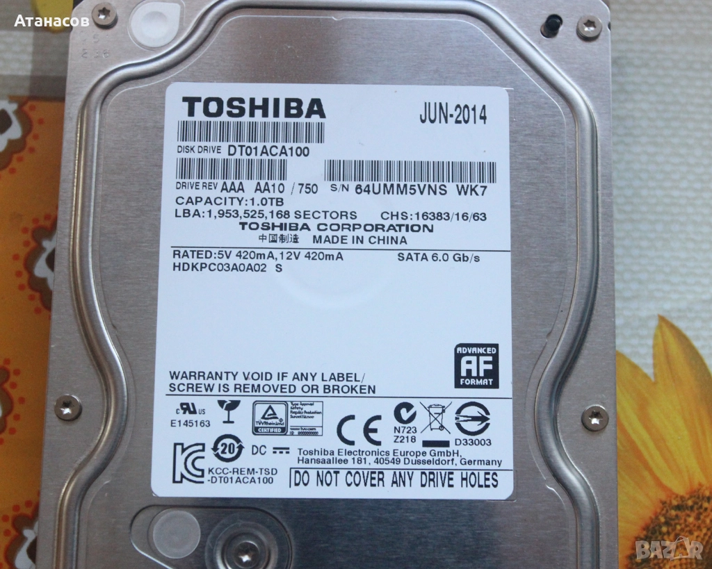 НОВ диск Toshiba 3.5 1TB 7200rpm 32MB SATA3 (DT01ACA100), снимка 1 - Външни хард дискове - 52797650 НОВ диск Toshiba 3.5 1TB 7200rpm 32MB SATA3 (DT01ACA100), снимка 2 - Външни хард дискове - 52797650 НОВ диск Toshiba 3.5 1TB 7200rpm 32MB SATA3 (DT01ACA100), снимка 3 - Външни хард дискове - 52797650 НОВ диск Toshiba 3.5 1TB 7200rpm 32MB SATA3 (DT01ACA100), снимка 4 - Външни хард дискове - 52797650 НОВ диск Toshiba 3.5 1TB 7200rpm 32MB SATA3 (DT01ACA100), снимка 5 - Външни хард дискове - 52797650 1/5