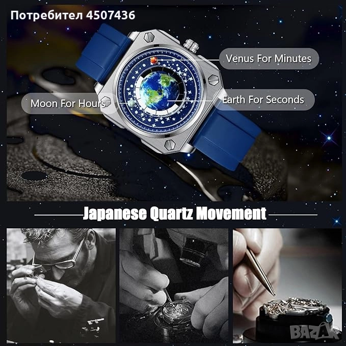 Креативен дизайн: часовникът с ъгловата стрелка умело интегрира Земята, Луната и Венера в дизайна на стрелката, възстановявайки траекторията на планетите с изгряващото слънце и залеза на луната. Поставете звездите на Вселената на китката си, наблюдавайте движението на Земята и Луната от космическа гледна точка и усетете течението на времето като в галактиката.