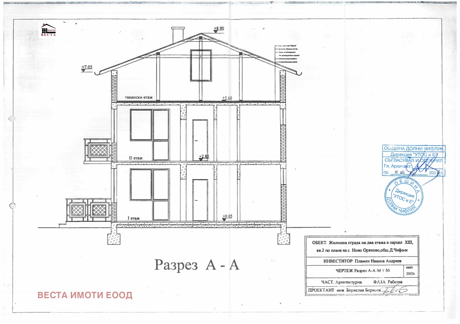,, Веста Имоти ООД предлага триетажна къща на груб строеж с РЗП 239 кв.м и прилежащо дворно място с площ 744 кв.м. в с.Ново Оряхово, област Варна. Районът се развива като курортно селце, в близост до плажовете на Шкорпиловци, на 2 км от черноморското крайбрежие, резервата Лонгоз и река Камчия, на 35 км южно от гр.Варна. Имотът се намира в центъра на селото, в тих и спокоен район ,обитаем, разполага с отлични транспортни връзки, подходящ за целогодишно живеене или ваканционен имот.