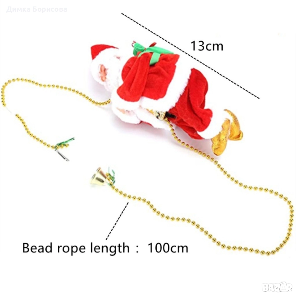 Катерещ се по мъниста Дядо Коледа. Височина на Дядо Коледа 13 см, дължина на въжето от мъниста 100 см