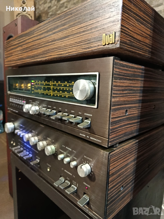 Красив комплек на DUAL от края на 70- те години на 20 век .Напълно 100% ва функционалност, прекрасен звук от 50 ватовият транзисторен усилвател. Тунерът е с много добра селективнст и потдържа "Стерео".
