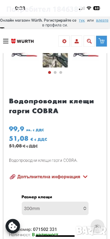 Продавам нови раздвижени клещи Knipex Cobra Germany.Произведени, за Wurth Germany.