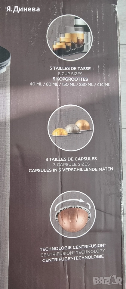 Продавам чисто нова кафемашина Nespresso Vertuo Plus, нее използвана изобщо само е тествана с 1 кафе. Изключително тиха и лесна за употреба, има контейнерче както за водата така и за отпадъците. Към нея има подарък капсули с най различни видове кафе. Внос от Германия.