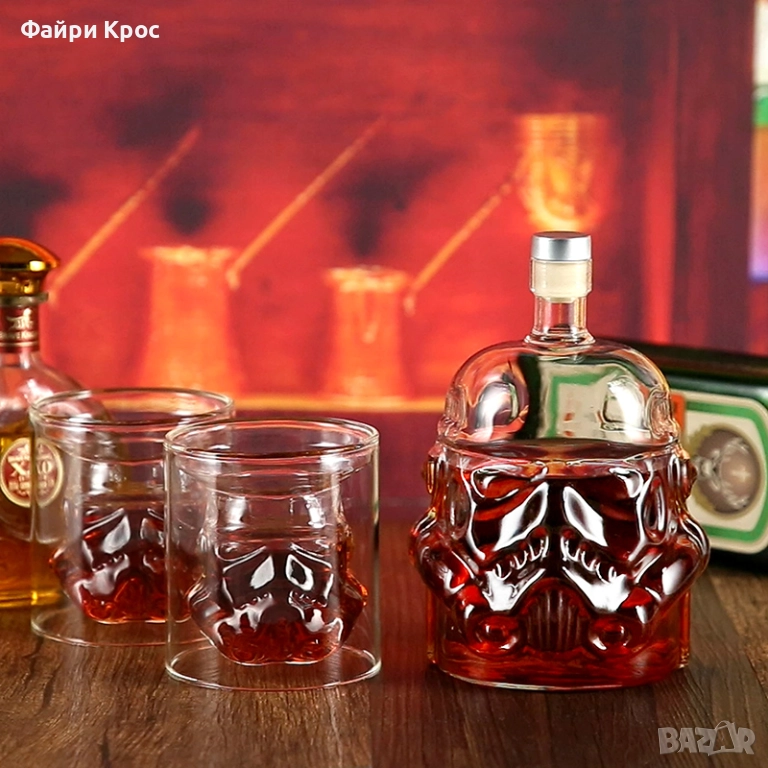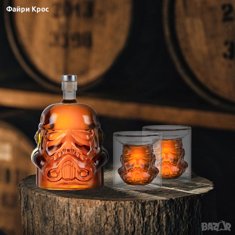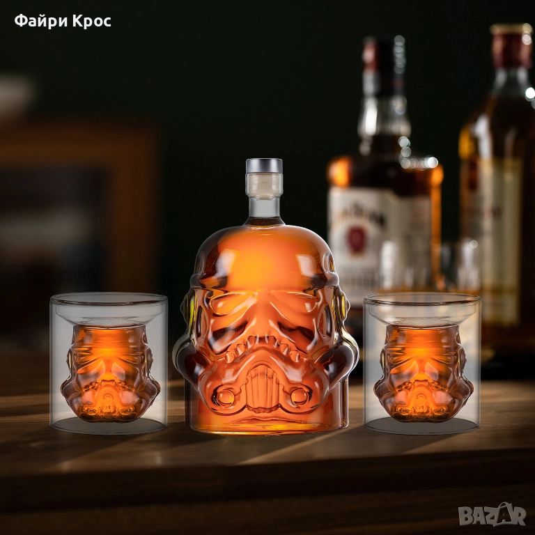 Комплект за уиски с 2 чаши и бутилка Stormtrooper е начин да внесете повече вдъхновение в домашния си бар и пособия за сервиране на питиета, като издига ритуала на съвсем друго ниво. Готов да съхрани всяка ваша любима напитка. Истинско вдъхновение за разговори, специална обстановка, вдъхновена комуникация на всякакви теми с приятели, близки, колеги. Всеки заслужава да има повече красота в живота си. Затова, не правете компромиси и с домашния бар и пособията в него и си осигурете най-доброто.