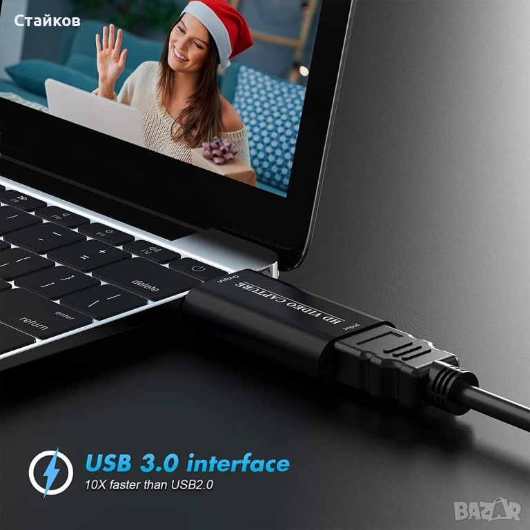 HD Video Capture Card устройство за преобразуване на HDMI видео и аудио сигнал към USB.4K HDMI към USB 2.0 Video Capture Device, 1080P HD, за пренасяне на живо и запис на видео и аудио сигнал от вудеоустройства към компютър или лаптоп, за запис и на видео за игри, преподаване, Video streming, видео конференции.