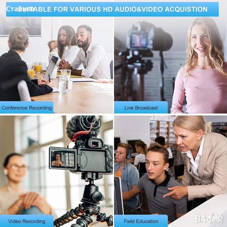 Широка съвместимост --- Поддържа Windows, Android и MacOS; AWG26 HDMI стандартен кабел поддържа вход до 15 метра 1080P; отговаря на USB видео и UVC стандарта, както и USB аудио UAC стандарта.