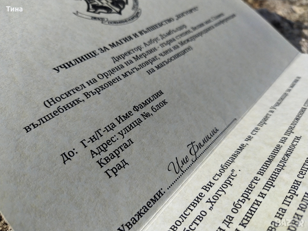 Персонално Писмо от Хогуортс → Обява 52799281