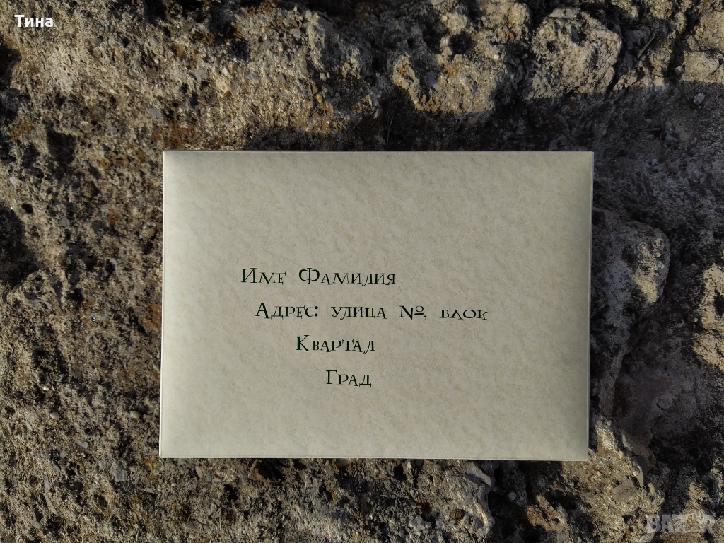 За направата му са необходими данни за получателя на писмото: имена и адрес така, както искаш да изглеждат върху плика и писмото.