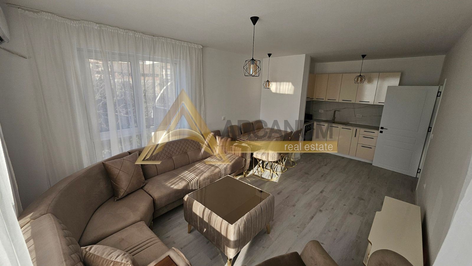 Арканум груп недвижими имоти предлага под наем луксозен двустаен апартамент, разположен в чисто нова сграда ,с модерни и представителни общи части. Имотът се отдава за първи наематели, не е живяно в него, напълно нов и подготвен за незабавно настаняване.