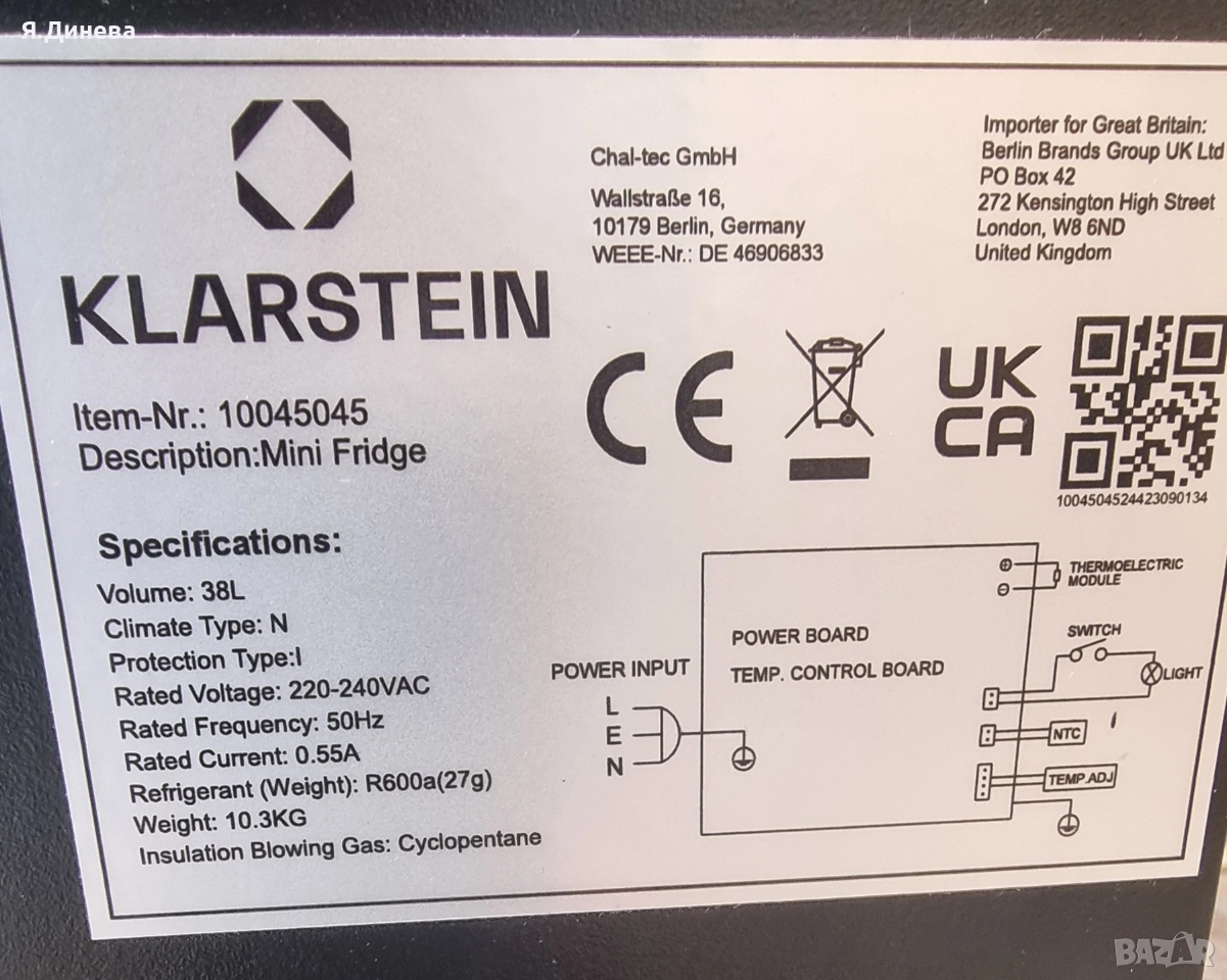 Мини хладилник Klarstein 38L → Обява 52799375