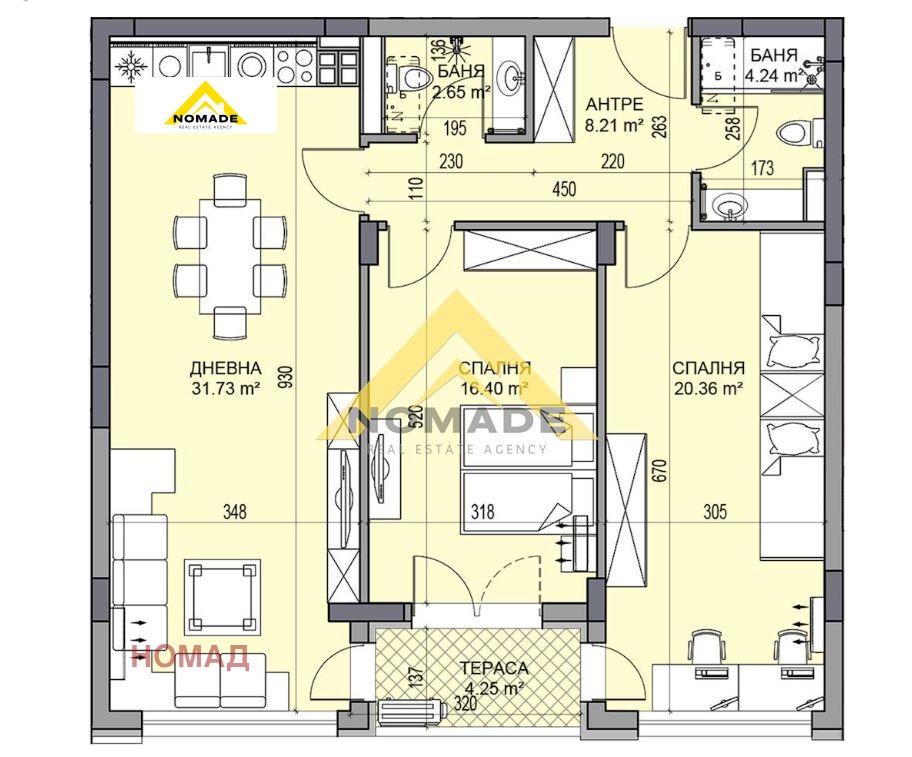 Просторна дневна с кухненски бокс и трапезария 31.73 кв.м