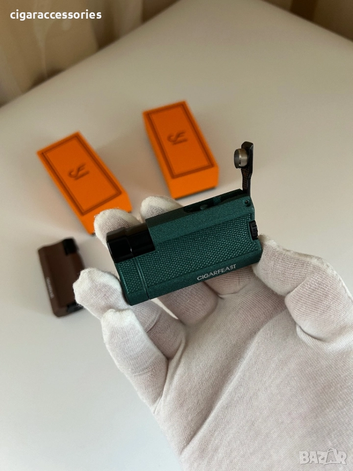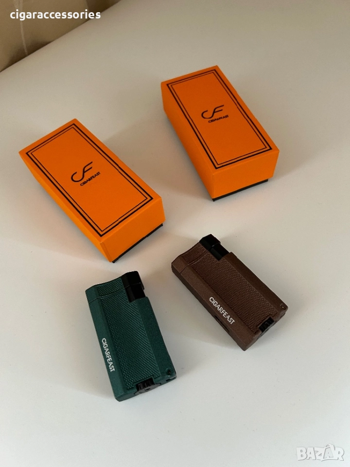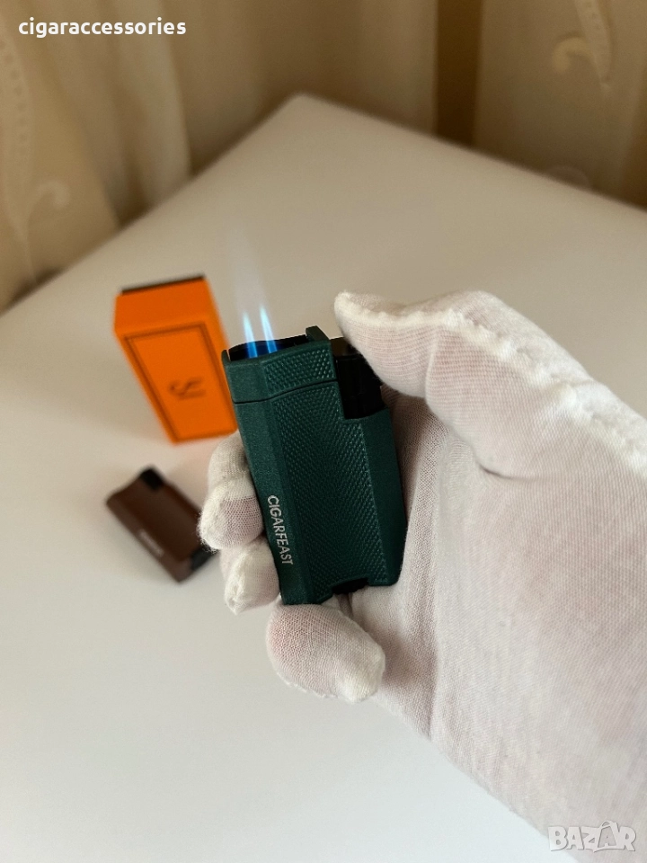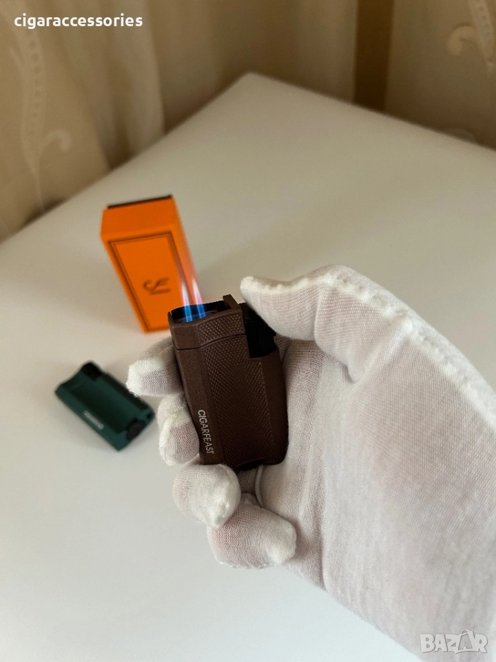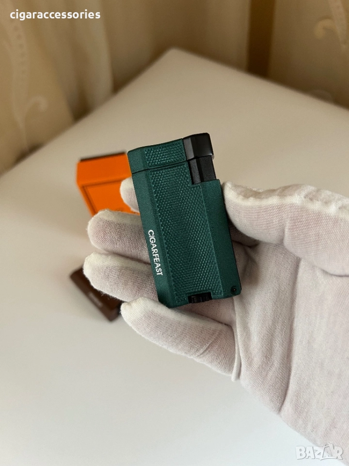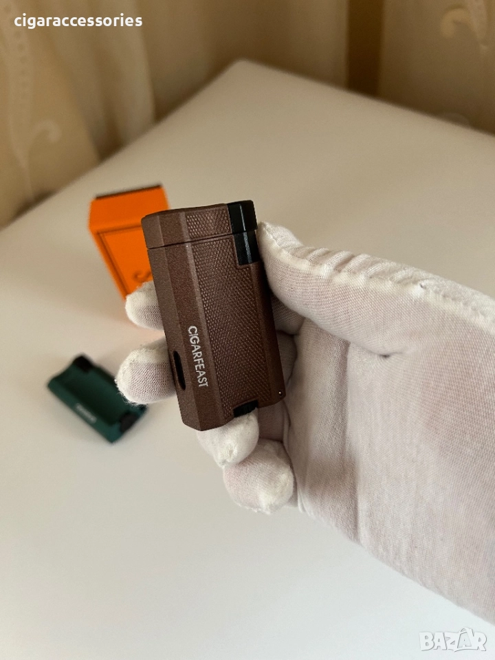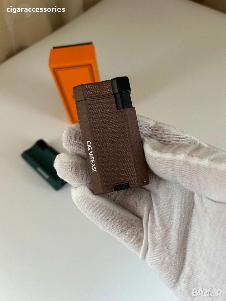 Стилна запалка CIGARFEAST с текстурирана повърхност и мощен турбо пламък. Идва в оригинална оранжева кутия!