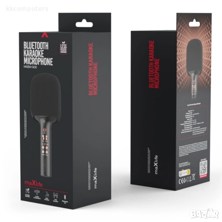 Безжичен микрофон Maxlife MXBM-600 с тонколонка, за караоке е идеалното решение за всички любители на музиката и пеенето, като осигурява пълна свобода на движение благодарение на Bluetooth 5.0 технологията и възможност за безжично свързване със смартфон, таблет, телевизор или компютър. Компактен и удобен за пренасяне, той позволява микрофонът и вградената тонколонка да работят едновременно, без нужда от допълнителна техника. Разполага с бутони за смяна на песни и регулиране на звука, вграден eхo ефект с настройка на интензитета, както и опция за свързване с втори микрофон MXBM-600 за дуети и съвместно пеене. Здравият корпус и леснодостъпните портове го правят практичен, надежден и подходящ за употреба навсякъде.